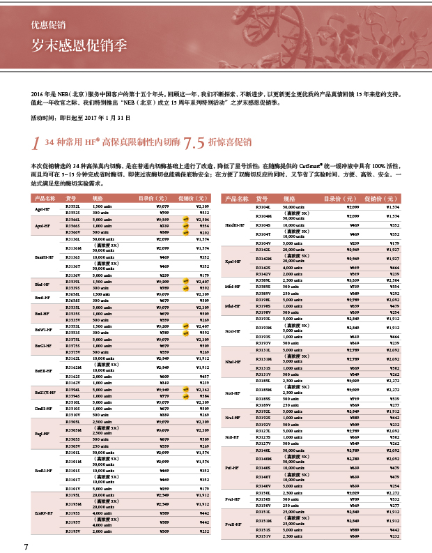 1. 34 種常用 HF? 高保真限制性?xún)?nèi)切酶 7.5 折驚喜促銷(xiāo)