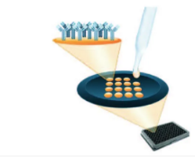 → 自動(dòng)液體裝卸機(jī)在96孔板沒(méi)孔中打印20-50nL的點(diǎn)用來(lái)包被抗體