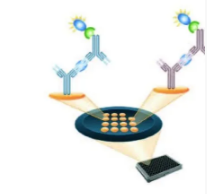 多因子檢測(cè)是一種基于96孔板夾心法酶聯(lián)免疫檢測(cè)技術(shù)。涉及到特異性針對(duì)各標(biāo)志物的包被抗體和檢測(cè)抗體。把樣本和校準(zhǔn)品加入到包被了抗體的96孔板點(diǎn)陣中,這樣就能在96孔板中固定住它們的位置。洗去未結(jié)合的蛋白,加入特異性生物素標(biāo)記的多因子抗體混合物。