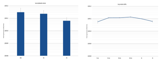 左圖:復(fù)合物工作體積:由10%減至1%。右圖:復(fù)合物穩(wěn)定性: 可延長至6小時