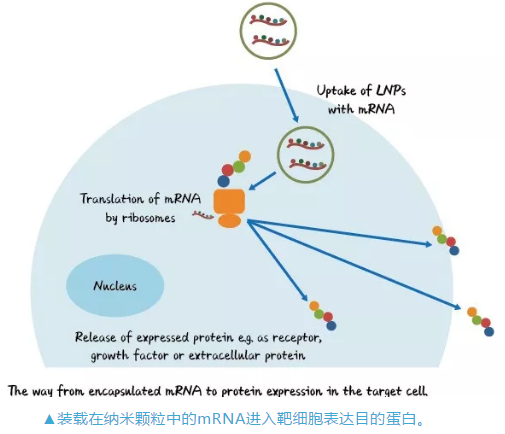 文章顯示,研發(fā)人員采用體外轉(zhuǎn)錄mRNA合成技術(shù),將表達(dá)病毒SARS-CoV-2蛋白N、M、E和S轉(zhuǎn)入細(xì)胞,進(jìn)行表達(dá)篩選,并通過蛋白自組裝,成功獲得了不含RNA內(nèi)核的病毒樣顆粒(virus like particle,VLP)。電鏡照片清楚地顯示了病毒外殼中由S蛋白構(gòu)成的“皇冠”,這也正是病毒進(jìn)行細(xì)胞侵襲的關(guān)鍵部分。將mRNA疫苗遞送到體內(nèi)后,表達(dá)的病毒樣顆??杉せ蠲庖呦到y(tǒng),產(chǎn)生有效結(jié)合病毒的中和抗體。